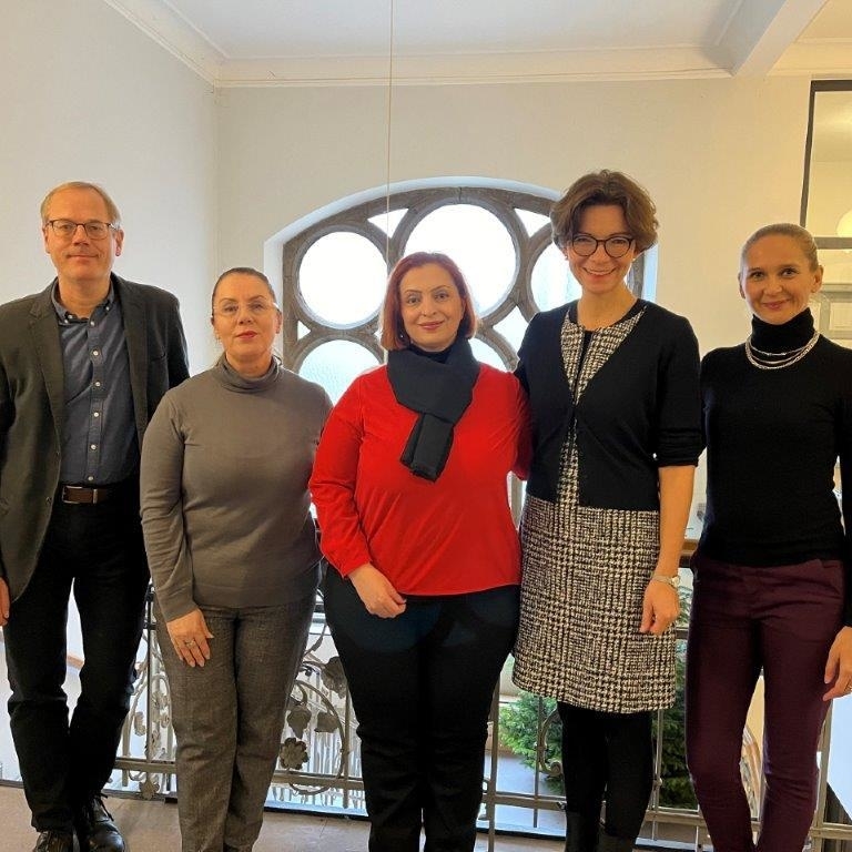 : Ulrich Klattenhoff (stellvertretender Direktor des Amtsgerichts), Selvie Gjocaj (Albanien), Syuzanna Poghosyan (Armenien), Dr. Judith Hilker (Direktorin des Amtsgerichts), Olja Krstikjeska (Nordmazedonien)
